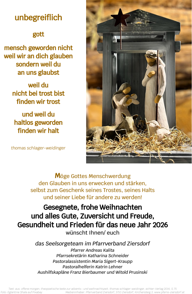 Samstag: 18.00 Uhr Pfarrkirche Ziersdorf