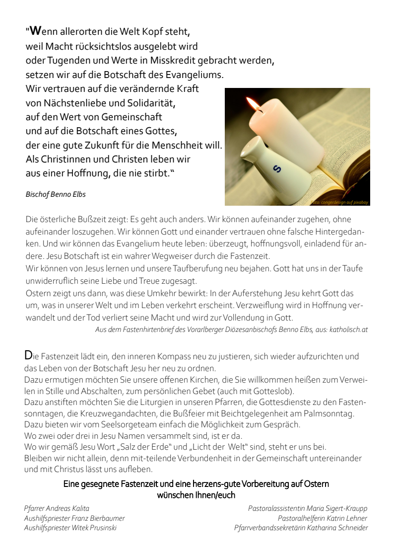Pfarrer: Mag. Andreas Kalita, 02956 2219 oder 0660 527 31 68